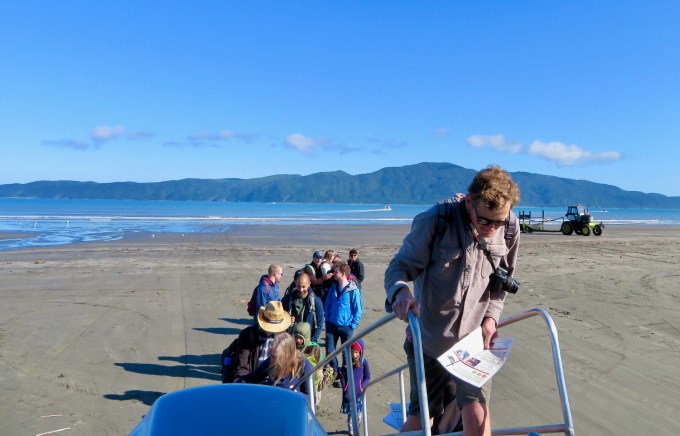 The boat ride from Paraparaumu to Kapiti Island only takes about 20 minutes. As the beach is shallow, we climbed onto the boat on shore and a tractor took us out until the boat could float.