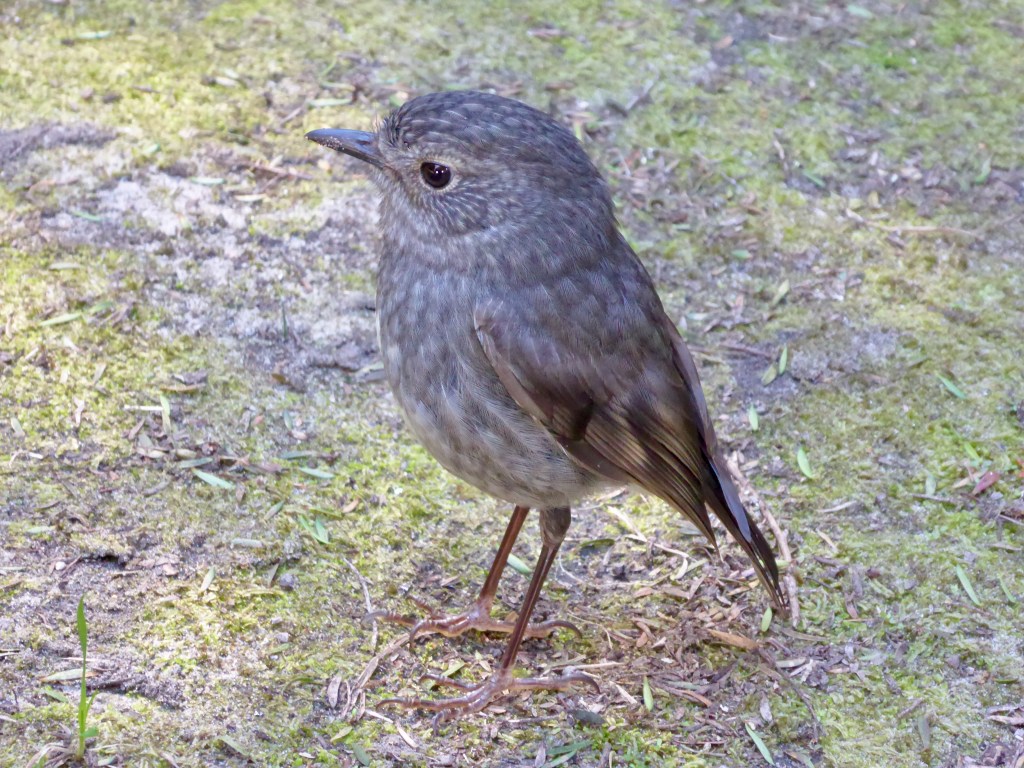 I was very pleased to have a North Island robin (Petroica longipes), Maori name toutouwai, join me as a sat at the edge of the bush. They are sweet little birds, not at all shy and very trusting. They will come very close to humans.