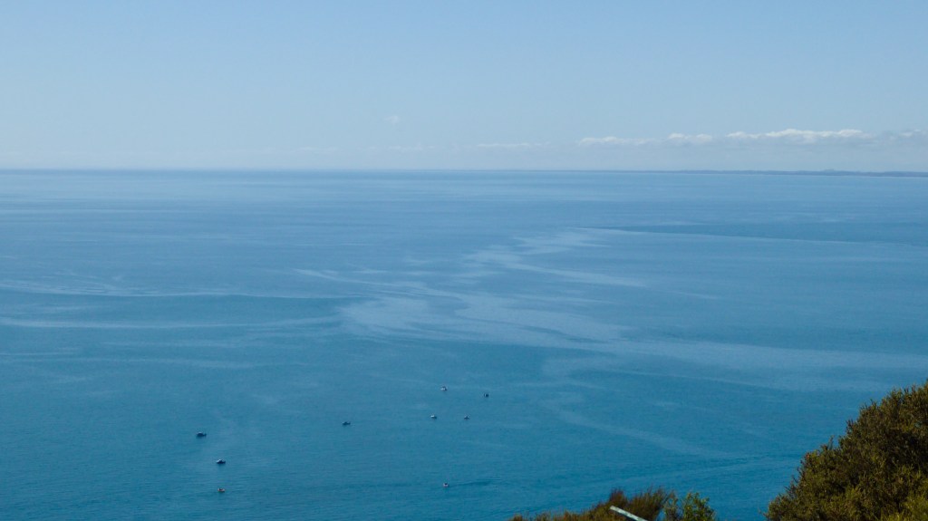 The view was lovely. The sea was calm and there were many boats out fishing. I had lunch here, weka free.